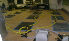 Water damaged hardwood flooring can be identified by cupping, warping, discoloration and flaking of the surface. Due to density and vapor barriers, wood floors are one of the most difficult materials to dry. Wood floors must be promptly dried and we urge you to have your water damaged wood floor moisture tested and evaluate.